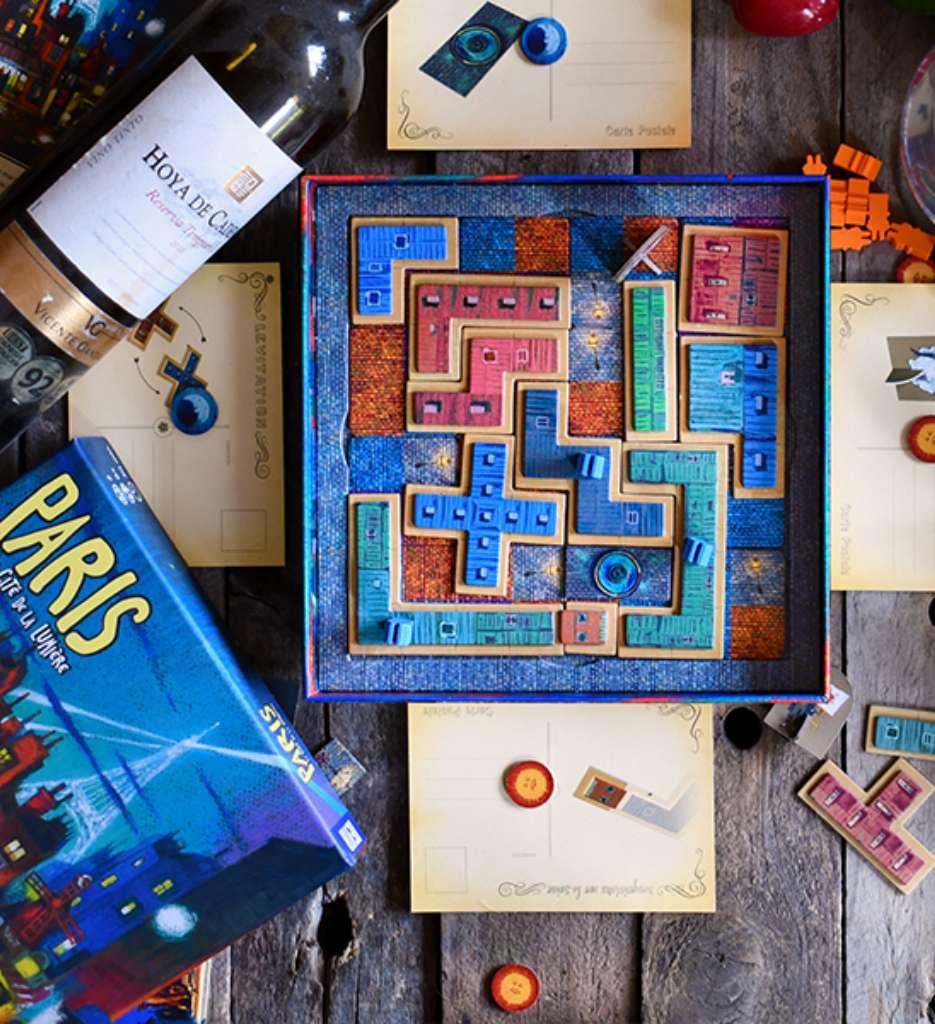 Un juego de colocación de losetas para 2 jugadores, donde construyes tu París ideal y tratas de iluminar edificios junto a faroles para ganar más puntos.